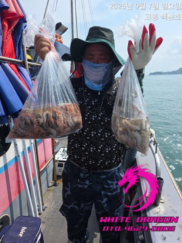 |   오후 5시 출항 하여 01시 까지 선비 7만원 백중사리로 인해 1주일가량 문어를 묶혀놨으니 좀 나오겠죠? ㅋ ㅇㅏ직 4자리 여유 있습니다 함께라실분 연락쥬세요 010-4629-0806 ===고흥 백룡호 예약안내 === 예약문의 : 010-4629-0806 오시는길 : 전남 고흥군 도양읍 봉암리 2766-6 홈페이지 : http://whitedragon.sunsang24.com/